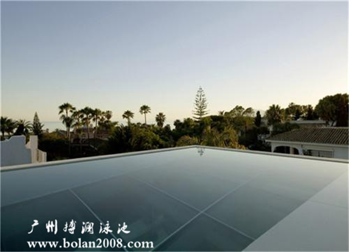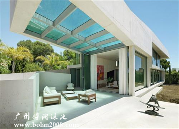 泳池一面朝向室內(nèi)的玻璃