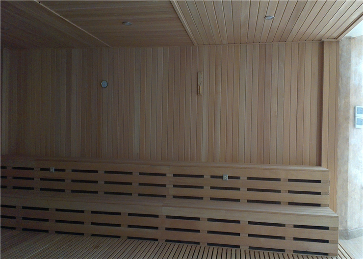 桑拿房采用進口桑拿爐及配件,房體使用歐洲白松木,經(jīng)特殊加工,現(xiàn)場制作安裝。