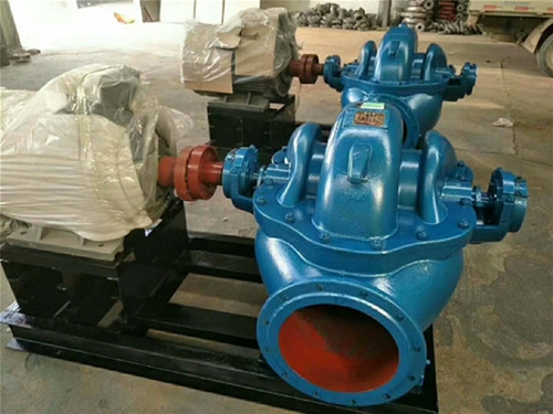 雙吸泵作為離心泵的一種重要形式,因其具有揚(yáng)程高、流量大等特點(diǎn),在工程中得到廣泛應(yīng)用。這種泵型的葉輪實(shí)際上由兩個(gè)背靠背的葉輪組合而成,從葉輪流出的水流匯入一個(gè)蝸殼中。雙吸泵具有如下一些特點(diǎn):它相當(dāng)于兩個(gè)相同直徑的單吸葉輪同時(shí)工作,在同樣的葉輪外徑下流量可增大一倍;泵殼水平中開,檢查和維修方便,同時(shí),雙吸泵進(jìn)出口在同一方向上且垂直于泵軸,利于泵和進(jìn)出水管的布置與安裝;雙吸泵的葉輪結(jié)構(gòu)對稱,沒有軸向力,運(yùn)行較平穩(wěn)。